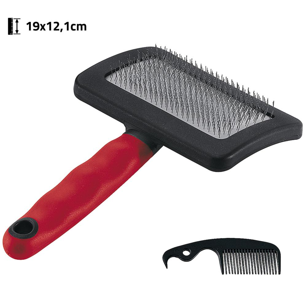 Enlever les poils morts du manteau de votre chien ou chat ne sera plus un problème grâce à cette brosse carde. Recommandée pour les animaux à poils moyens ou longs, elle a une poignée ergonomique pour une prise en toute sécurité. Fourni avec un peigne utile pour enlever les poils morts de la brosse.