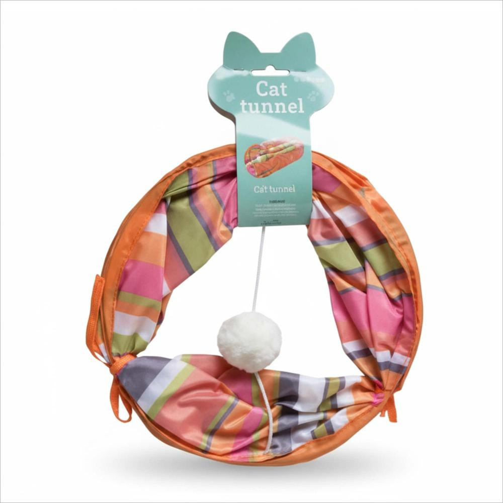 Tunnel pour chat avec balle en peluche et grelot – 55 x 25 cm