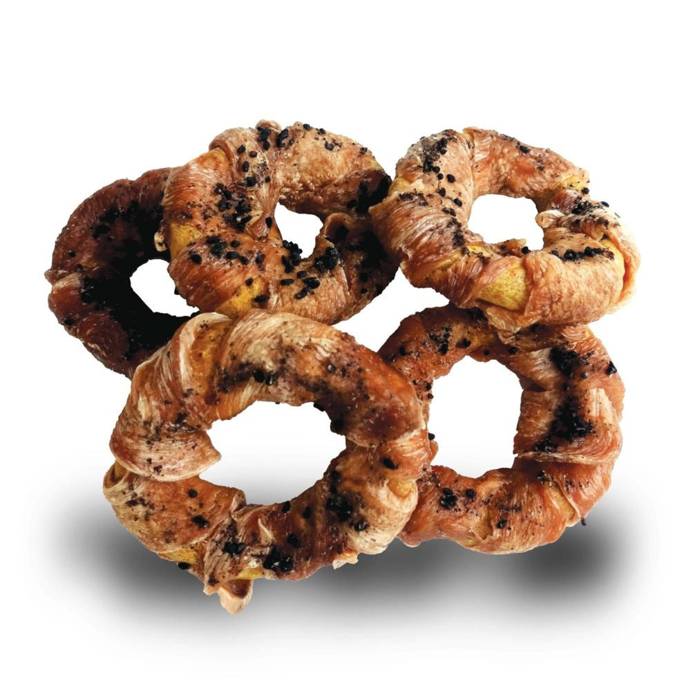 - Double gourmandise : Chaque DOGNUT associe le croquant d’un biscuit au poulet et carotte et la tendreté d’un slice de poulet séché, offrant une texture unique et irrésistible pour les papilles de votre compagnon.