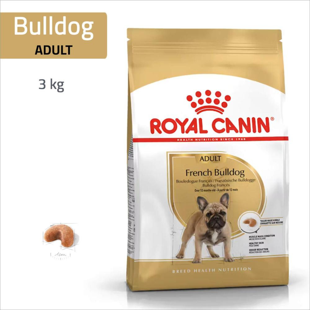 - Le Bouledogue Français est une race de petite taille à la musculature puissante, au corps compact et à l’ossature solide. Ces chiens vigoureux sont généralement vifs, actifs et intelligents. ROYAL CANIN® French Bulldog Adult est spécialement formulé pour répondre à tous les besoins nutritionnels de votre chien adulte et convient aux Bouledogues Français de plus de 12 mois.