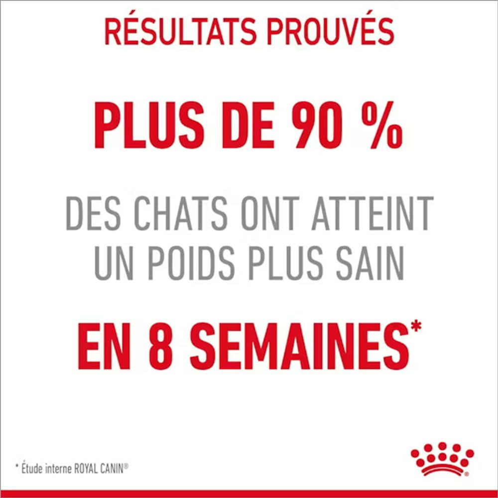 Plus de 90 % des chats ont atteint un poids plus sain en seulement 8 semaines (étude interne Royal Canin).