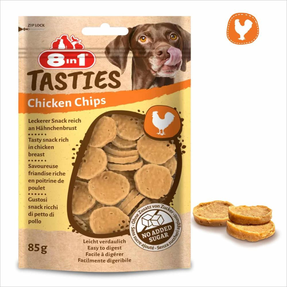 Les friandises 8in1 Tasties Chicken Chips sont des récompenses à la viande que votre chien va adorer.
