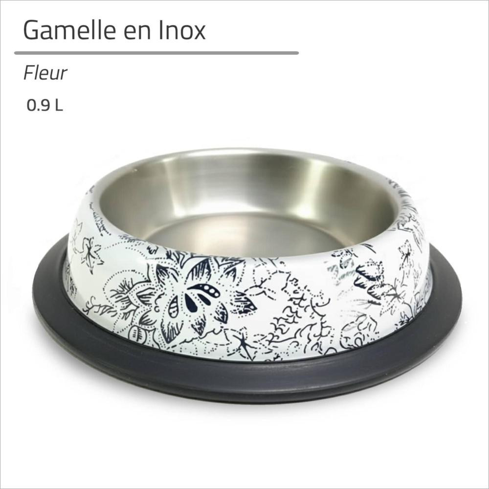 «Gamelle inox antidérapante design fleur, parfaite pour mon petit chien, se nettoie facilement.»