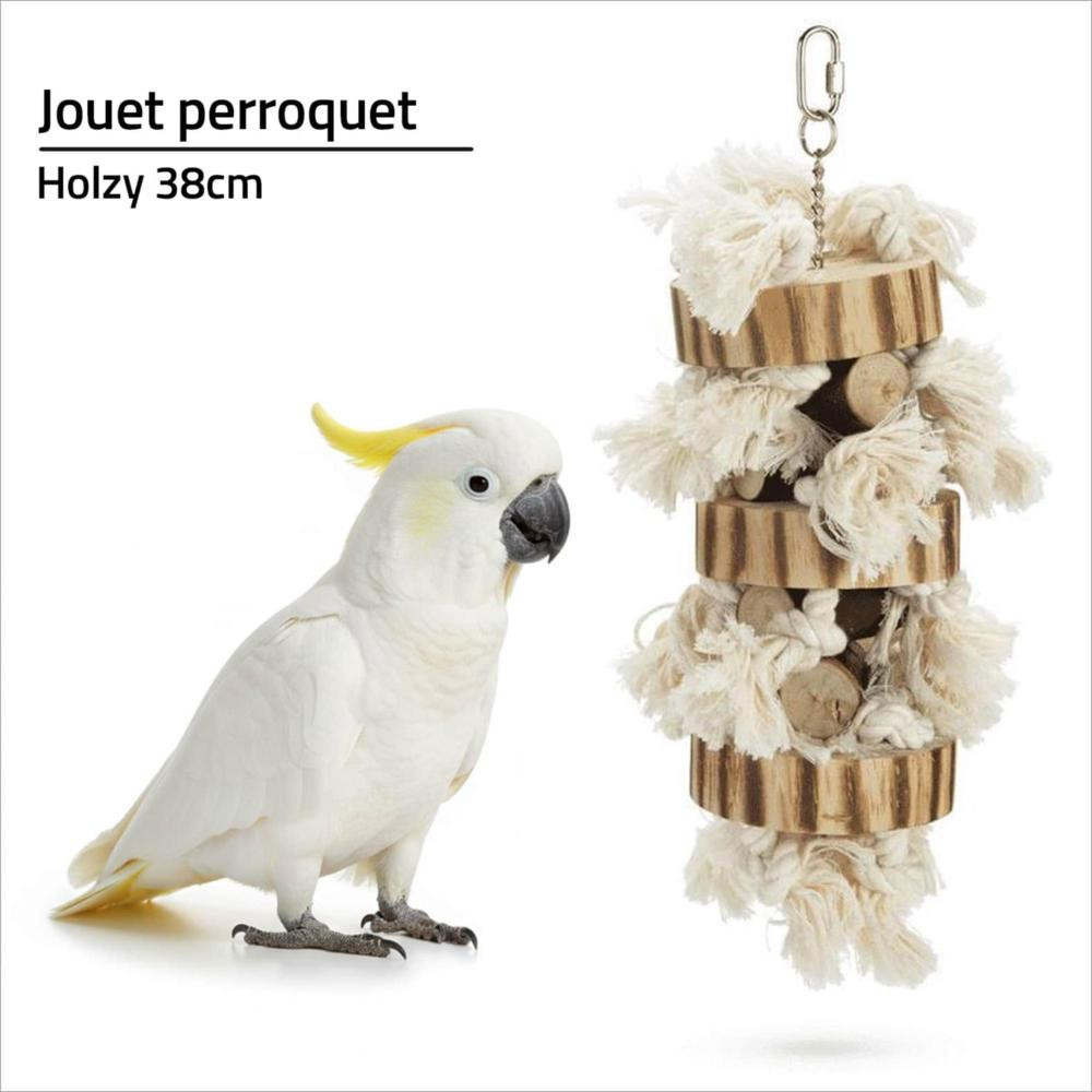 Offrez à votre perroquet des heures de jeu et de stimulation grâce à ce jouet en bois naturel et cordes de 38 cm.