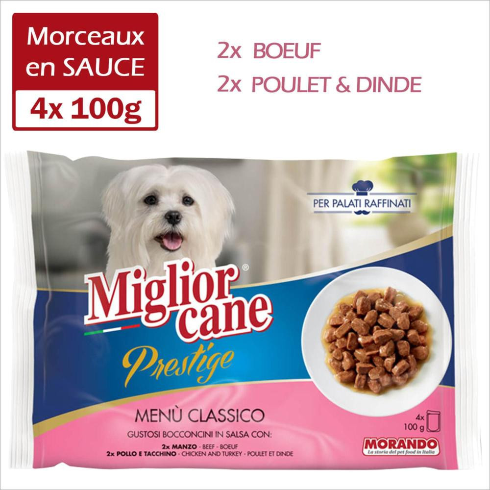 MIGLIORCANE PRESTIGE POCHON 4x100g - CLASSICO poulet/dinde/bœuf