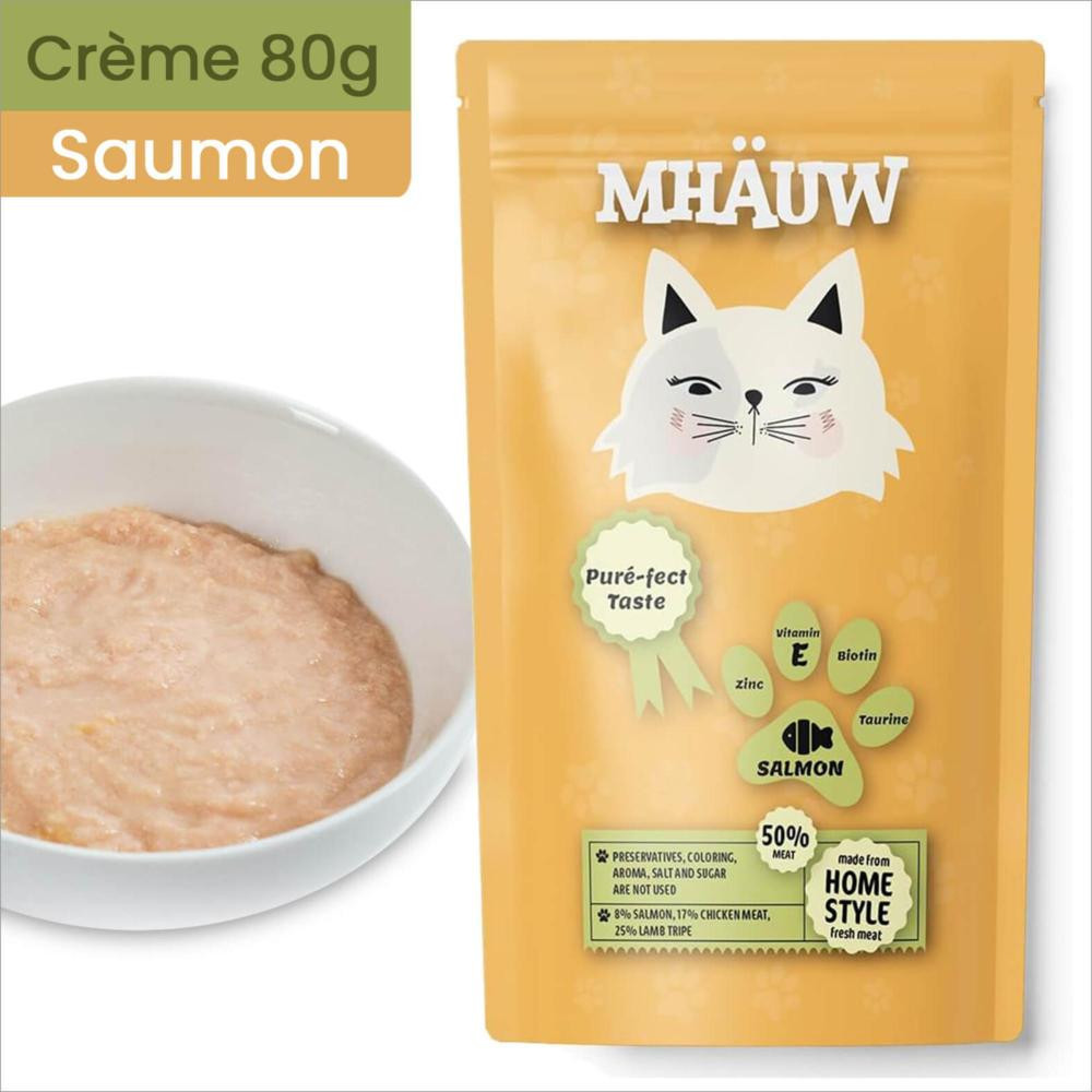 Mhauw – Pochon Crème au Saumon 80g pour Chat